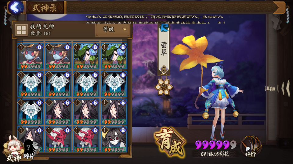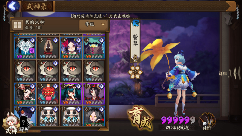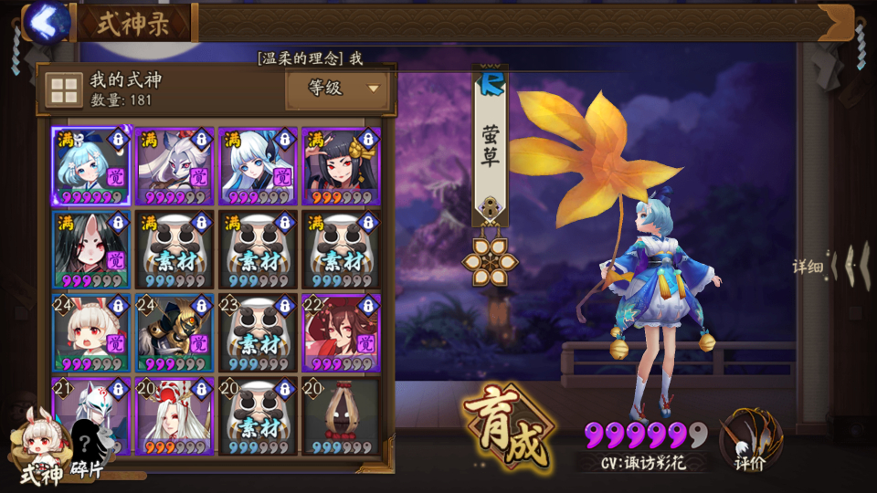 最后再附上我的莹草,对于各位大佬来说可能这只是一个渣,但对于我来说,她是我最好的式神。)