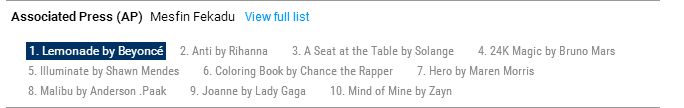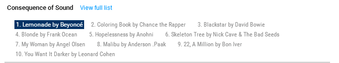 【LEMONADE】柠檬水目前为止已被32家媒体评为年度专辑