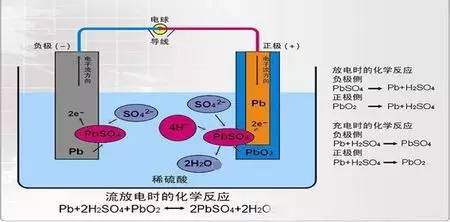 在电池放电时,负极活性物质青灰色的海绵状金属铅与硫酸溶液反应,生成硫酸铅,同时为外部电路提供电子;正极活性物质棕红色的二氧化铅接受电子,与硫酸反应也生成硫酸铅。这种电化学反应被称为“双硫酸盐化反应”。
