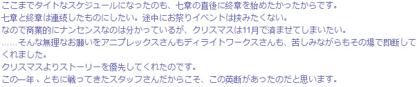 原来如此,的确如果7章和终章中间夹个圣诞节就没有紧凑感了…也就不会有我的推完7章休息1天接着推终章的完全同步了…