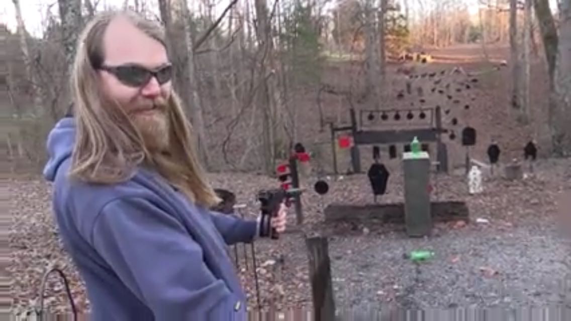 摄像大哥持枪演示bump firing,打了几轮,突然枪支抛壳口蹦出一颗没击发的子弹,落在他的手臂上。他说,这是他有生以来碰到的第一次。