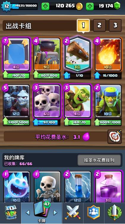 目前还在用胖墓,被精锐虐一烂……不过要想换卡组要好多金币……锦标在用镜像飞桶