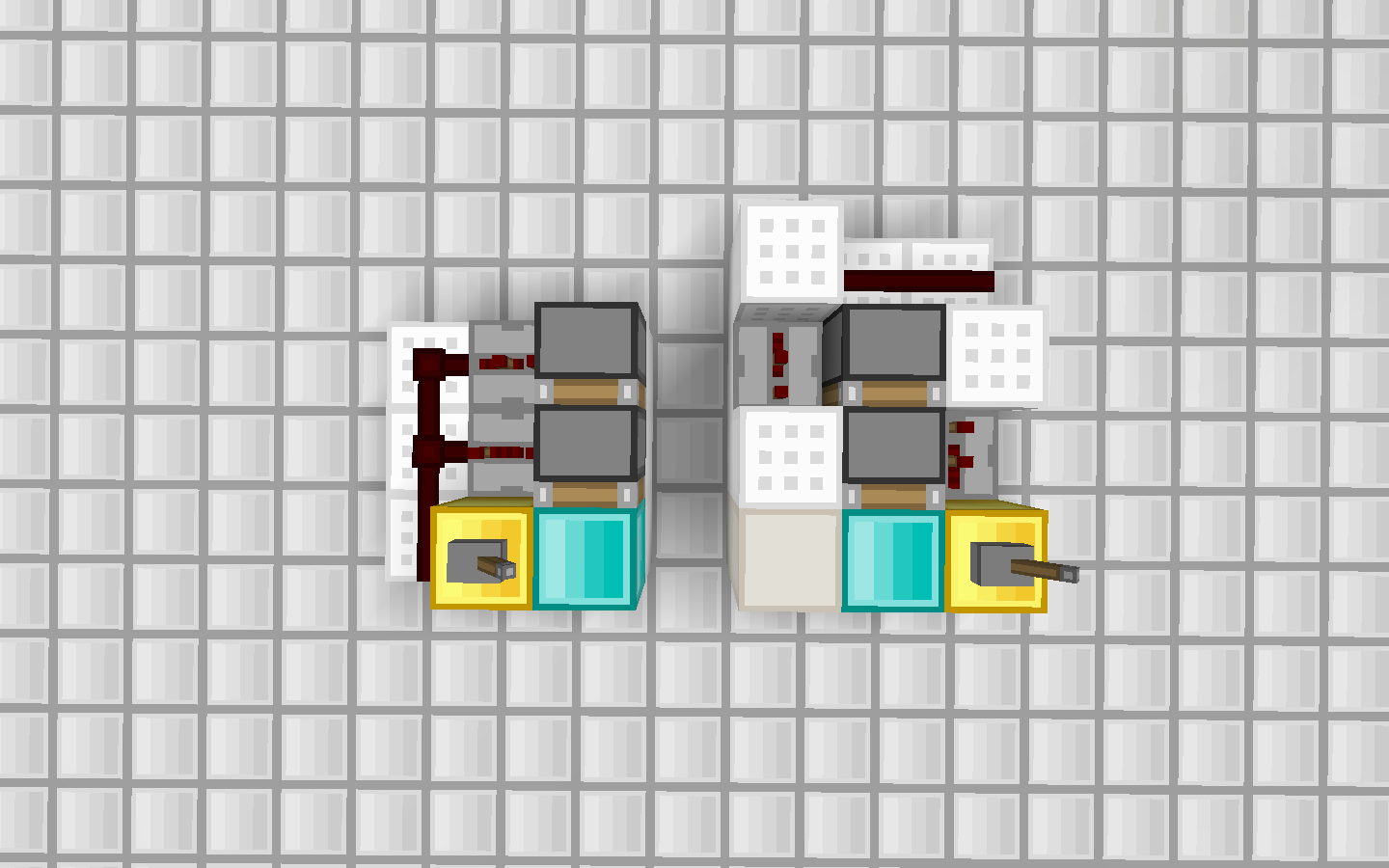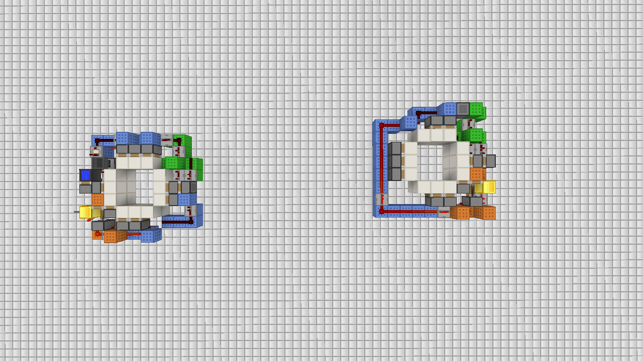 这两个的线路都是我想出来的,大小其实一样,都是48blocks。绿色羊毛的是时序重走部分。