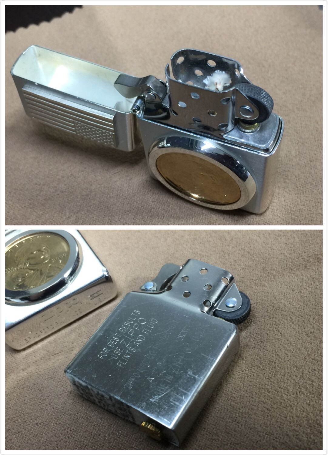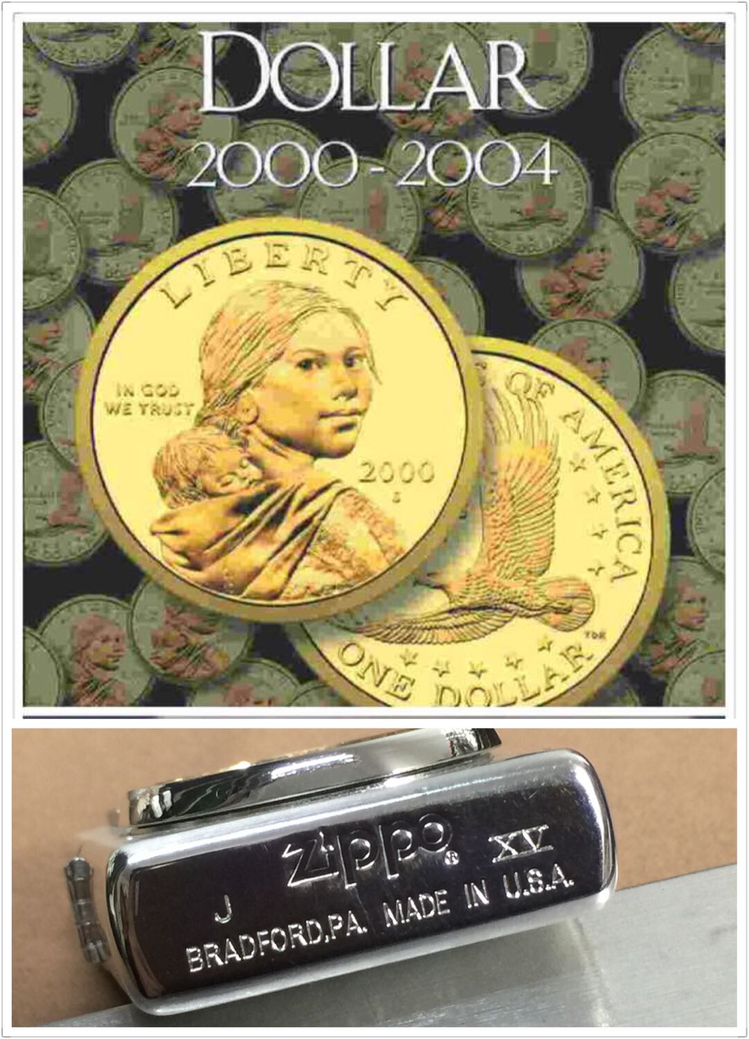【具体描述】全新1999年10月 限量 金美元(非金币)本机编号0621。机身镀银底板,正面上盖星条旗贴章,下盖活动贴章内含萨卡加维亚1美元纪念币一枚 可拆卸 会玩的可以换个同尺寸金币进去(直径26.5毫米,厚度1.9毫米)机身运输不当,镀银层轻微擦丝,一侧浅擦痕,底部一处出厂小瑕疵:针眼 均微距拍出,定义全新一般品。原配全新99A内胆,后配镀银机专用大纸盒包装。