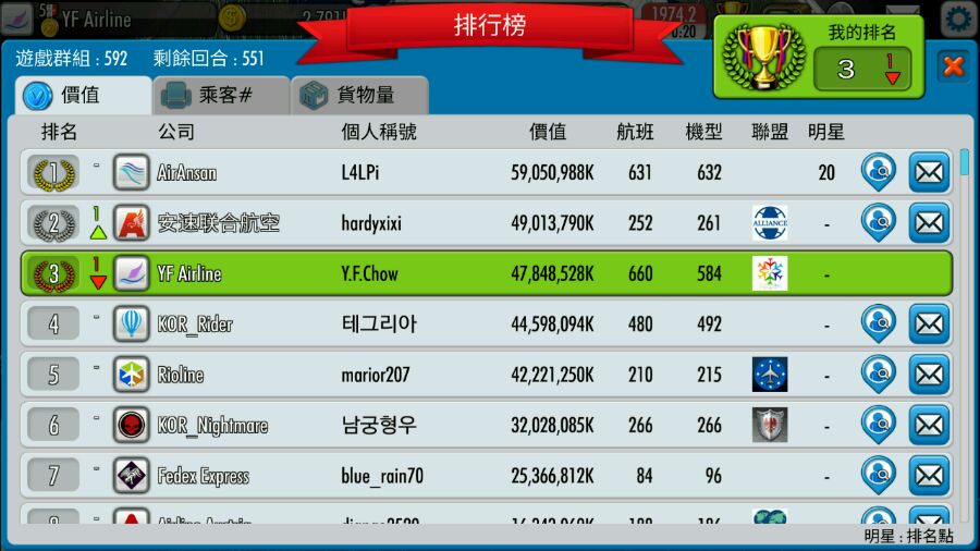 第二位的飛機數還不及我一半,現在又沒經濟危機。第二圖可見我的財務狀況正常,實在不理解為何會被反超且拉開不小的差距……