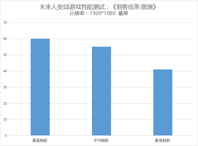 面对这么一款狂吃配置的游戏大作,未来人类S5也是一样的从容应对,当然我们还是依照惯例选用了最高等级的画质,通过测试软件我们可以看到FPS最高60最低时在41,平均稳定在55左右。这些数据强力的说明未来人类S5在大型游戏的表现上实在令人满意。