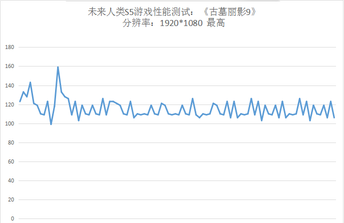 在数据波状图中,未来人类S5的主要帧数区间段维持在80至120帧之间,因此游戏的运行流畅度拥有很好得保证。所以未来人类S5在《守望先锋》这款游戏中的表现,确实能够满足玩家在激烈竞技中流畅的需求。