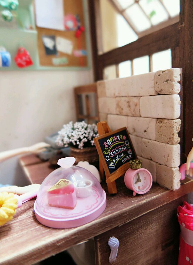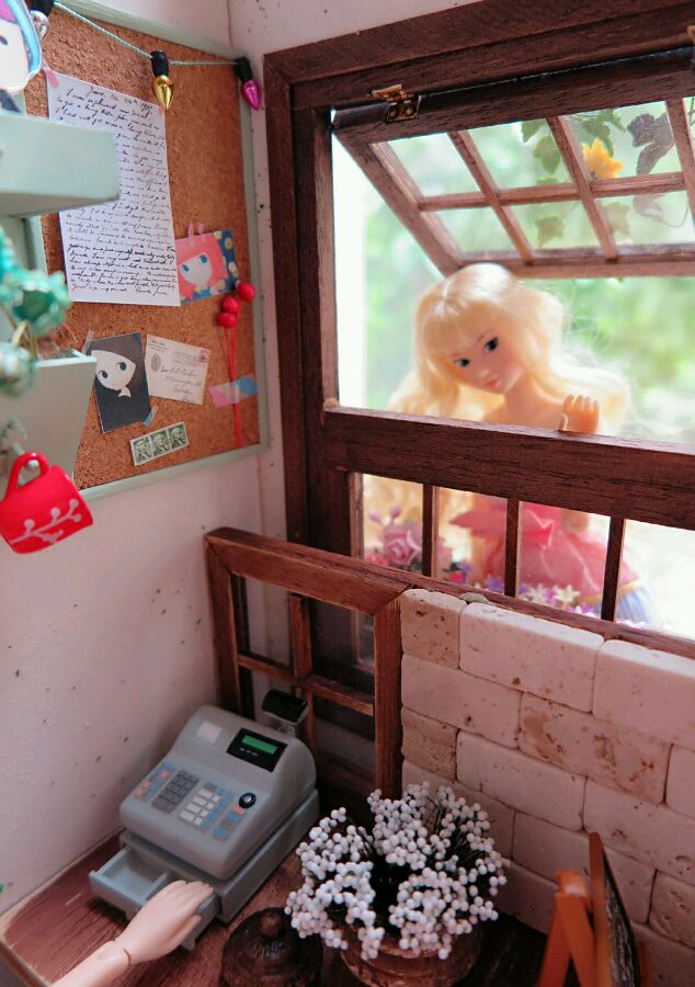 收起雨伞,LACY仔细端详了下小店外观。花池中清新的小花、半开的窗户、做旧陶瓷花瓶和枯枝,感觉象童话中七个小矮人的森林小屋,仿佛能闻到大自然清新的树木花草的芬芳,让LACY不由地精神一振。橱窗外倒吊着的枝枝蔓蔓间,“开张大吉”的广告牌上画着各式咖啡、蛋糕,还冒着热气。唉呀,好象真有点饿了~~~