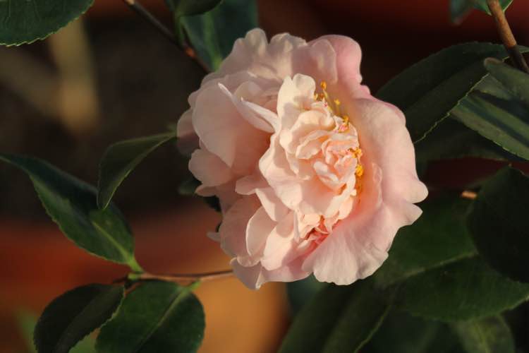 第一次养茶花,只有一颗,花开了