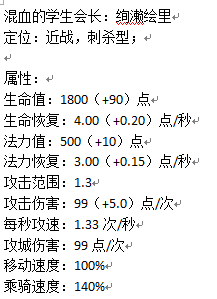 掀裙(冷却时间:8s消耗:45):单体指定性技能,立即冲向前方一位敌方单位,造成60(+5)点伤害并使其眩晕1秒。