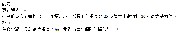 召唤坐骑:移动速度提高40%,受到伤害会解除坐骑效果。