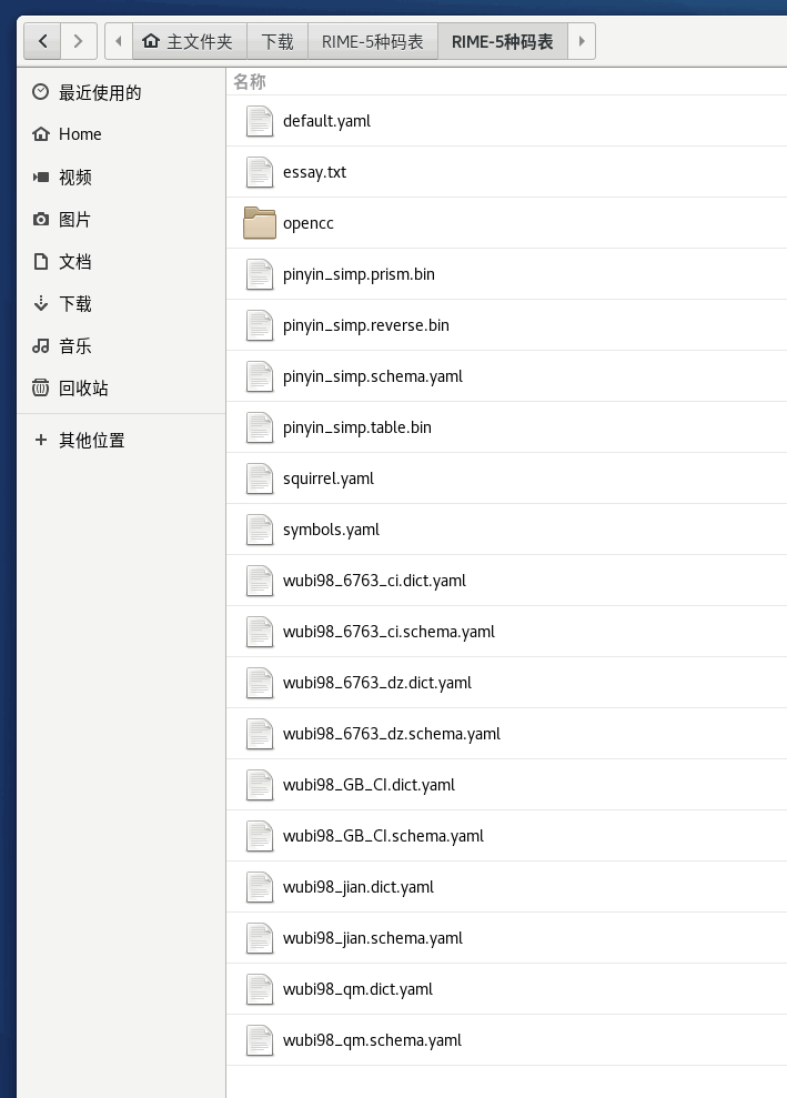 下载配置好的rime码表及方案声明文件,解压后直接放到