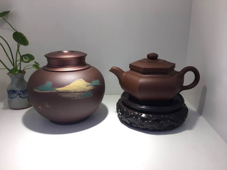 我是机缘巧合认识一个宜兴做紫砂的手工艺者。买过几把壶,上个月买了一个茶叶罐子。这个罐子等了俩月才做出来。买他的壶得等,碰运气。