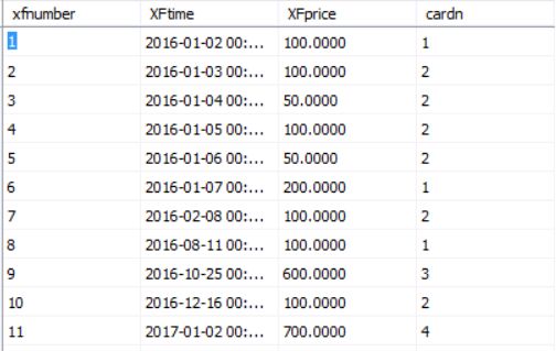 select * from table where cardn in(select distinct cardn from table group by cardn having COUNT(cardn)>=3) select xftime from table where cardn in(select distinct cardn from table group by cardn having COUNT(cardn)>=3) group by xftime 不太明白为什么用xftime分组 没看到有一样的情况 所以强行谢了第二句 不知道有没有你需要的结果