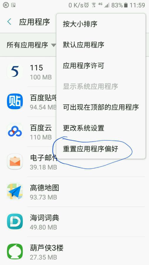 点击重置应用程序
