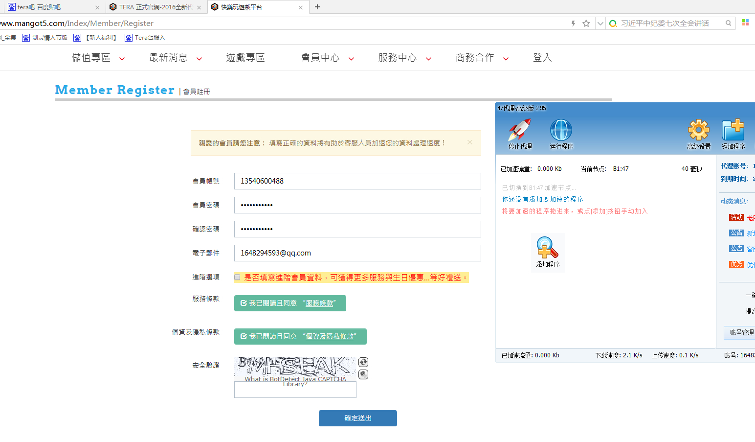 结果47需要把加速程序添加上去,这下我又把浏览器添加上去了。结果还是注册不起