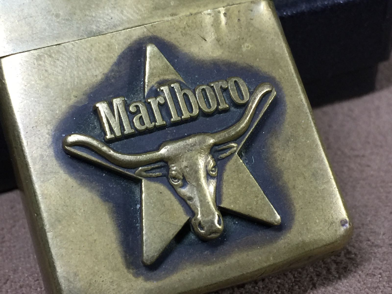 【具体描述】二手1993年3月 日版万宝路牛头。机身正常使用划痕氧化,底部有凹陷,合盖处有撬伤(以上两处硬伤)边角较多磕碰。铰链正常,原配93年内胆打火不错,摆锤少许磨损,黑纸盒包装。