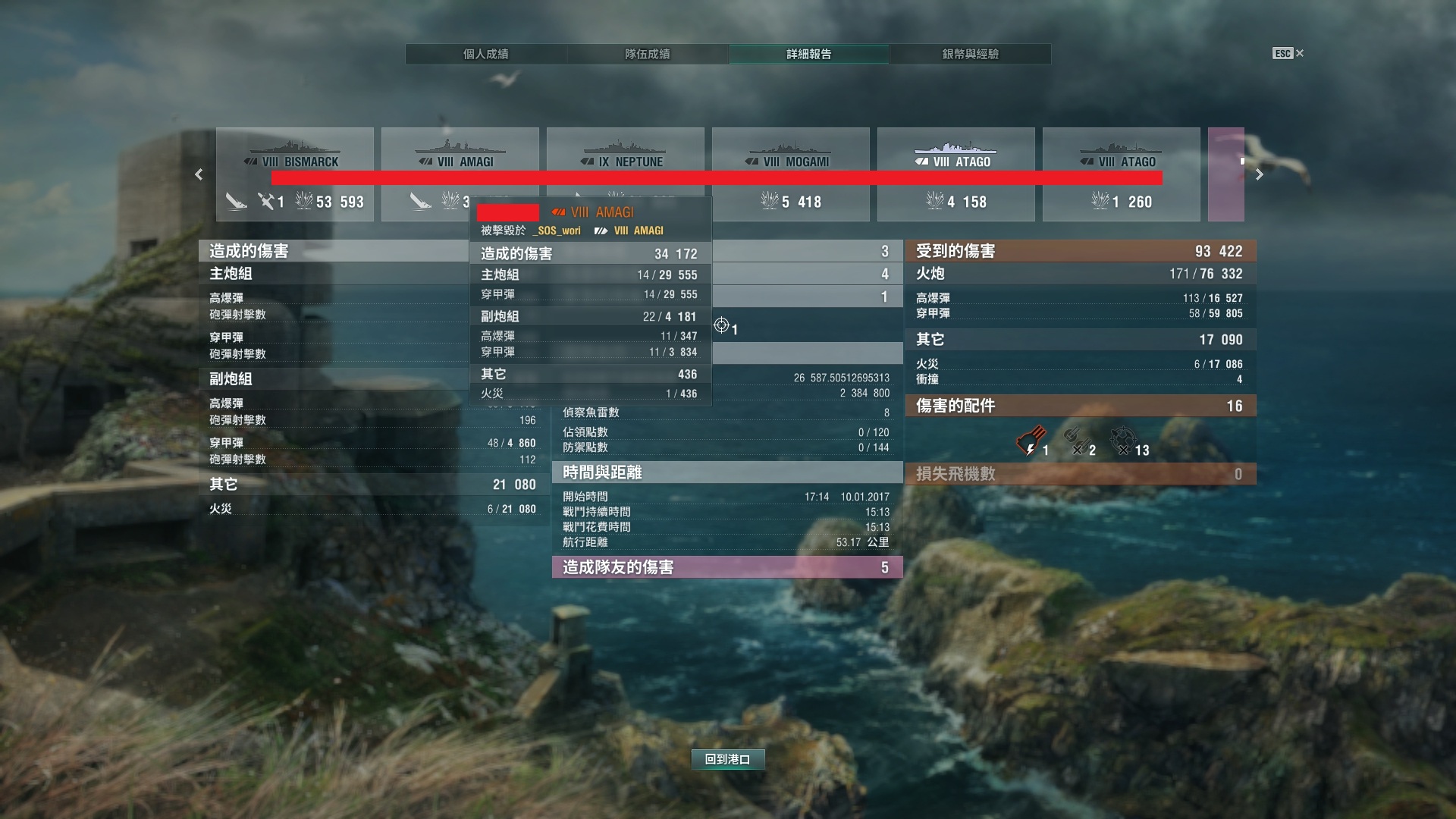这一把最后和对面的bsm T头互冲,10km齐射了一轮ap结果对面上层的模块hp没了,0伤