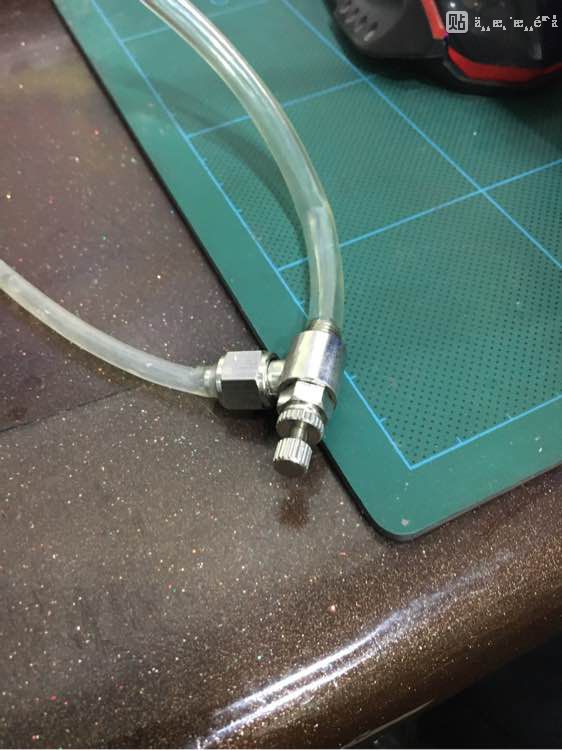 然后是燃料罐,之前材料没到,就自己先用一些旧零件临时做一个止回阀和一个燃料接口,还行吧,效果也还不错。后来买的各种气动元件到了,才更换了燃料接口,一个节流阀,一个微调阀,用起来感觉不错。不过最满意的还是自制的止逆阀和加压气囊导管。气囊是拆的血压计的气囊,但是导管与止回阀接驳的是自己做的哦……止回阀就不发制作过程了。反正自己挺满意的