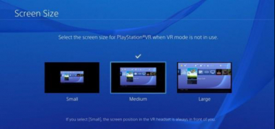 在PSVR的该功能下,一共提供了三种屏幕尺寸,117英寸、163英寸以及226英寸。体验最震撼的无疑是226英寸模式下的屏幕,因为它甚至需要玩家左右转动头部才能全部收入眼中,完全有种身在IMAX影院的感受。