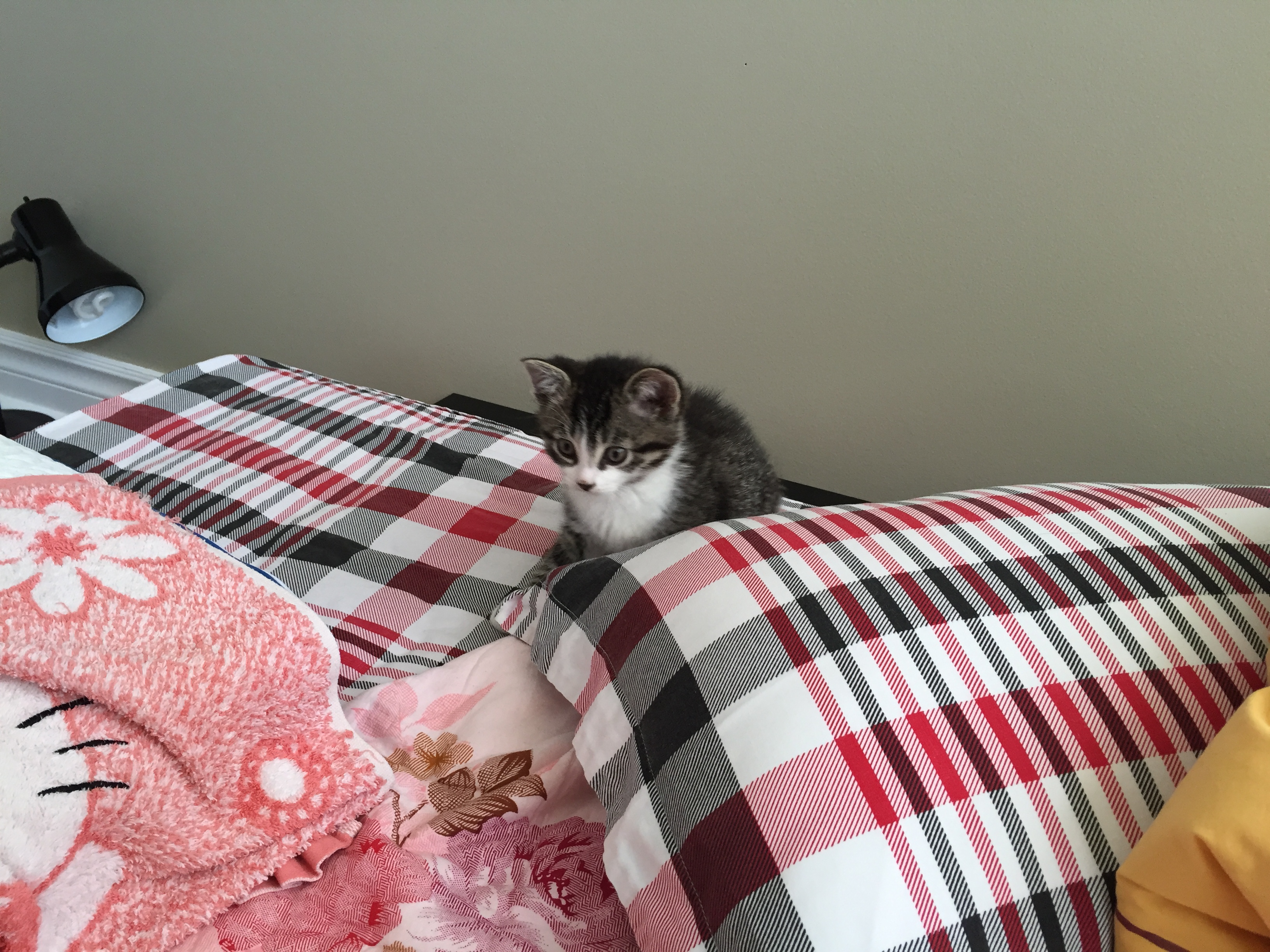 刚买回来的时候又小又萌又可爱。可是我老婆一直觉得脑袋小,所以用尽各种办法促进它脑袋生长,还多次回绝兽医建议绝育的建议,她认为一旦绝育,脑袋就不再长了,这一点也得到了兽医的认可,所以一直到去年12月30日才正式带它去绝育。