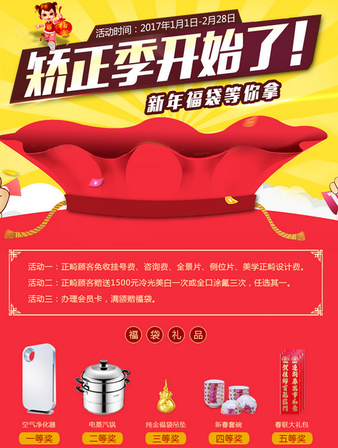1、牙齿矫正送冷光美白一次价值“1500元”或正畸全口涂氟3次;
