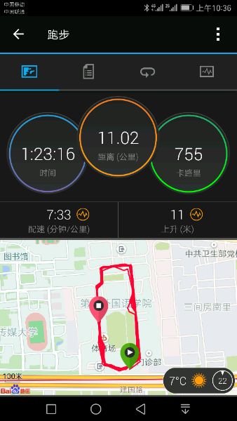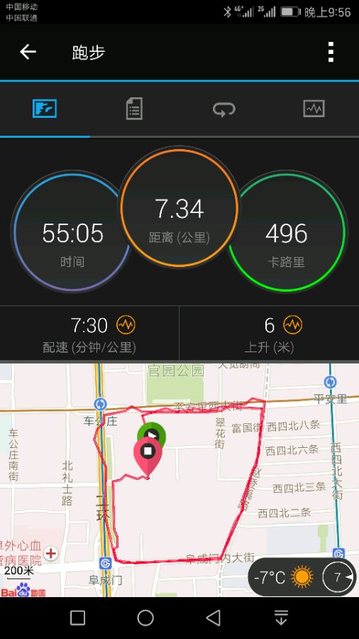 北京今天太冷了,跑步7公里,开始一段心率很高,估计是手表心率不准造成的。