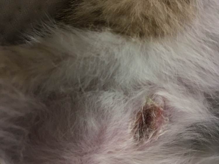 肚子那里,两个后退之间的肚子。猫没有舔咬。。。就像不存在一样。