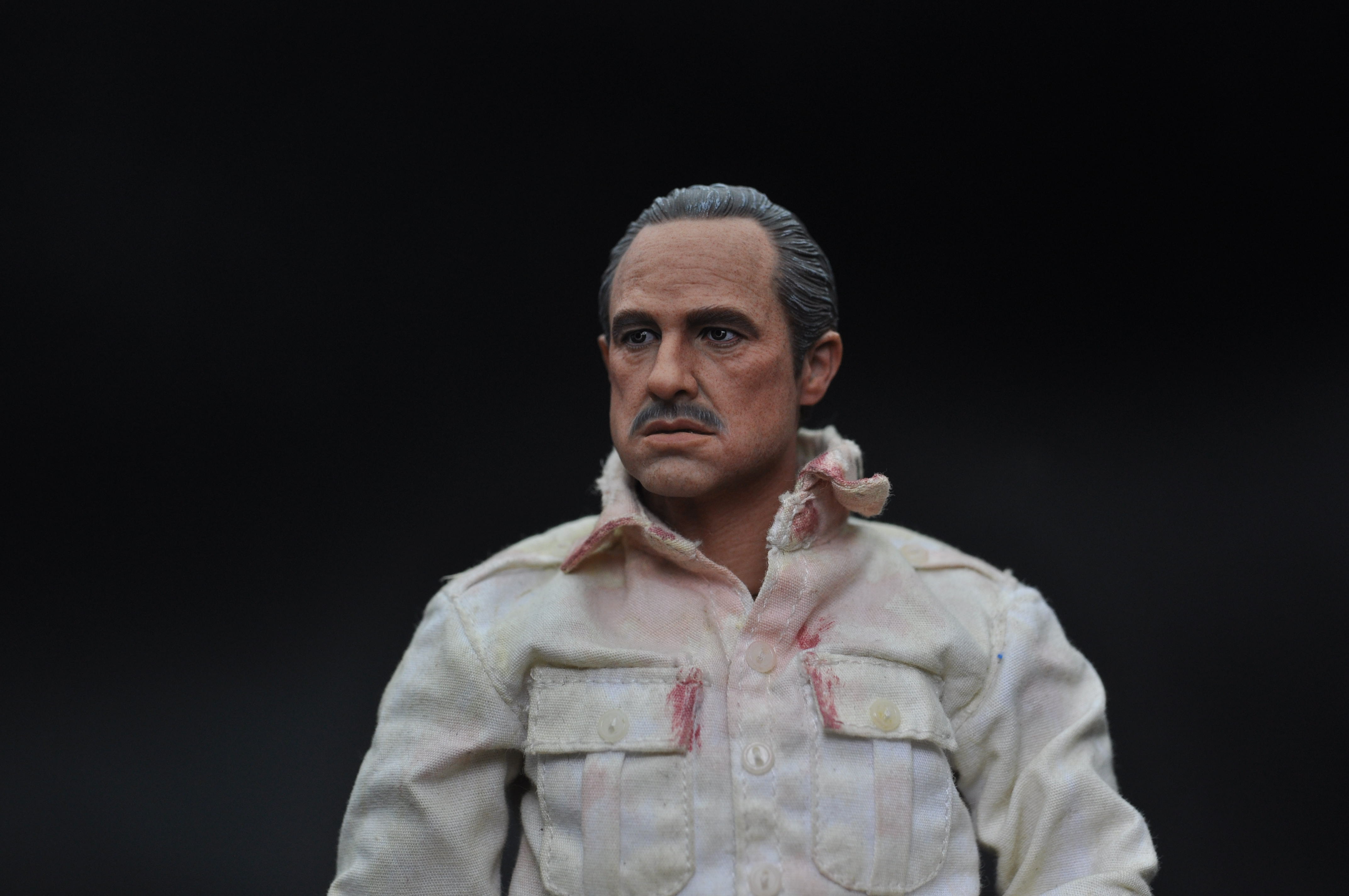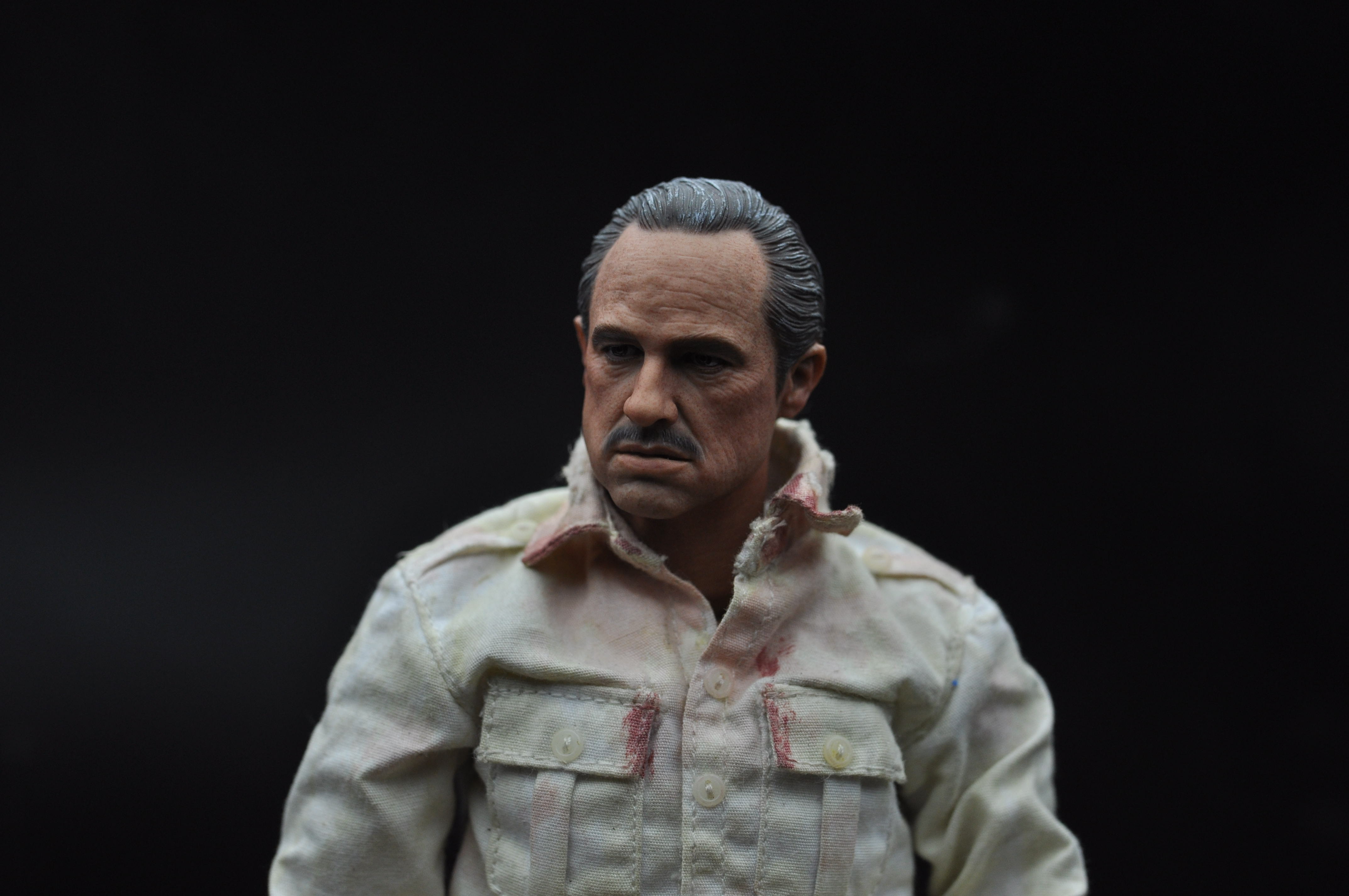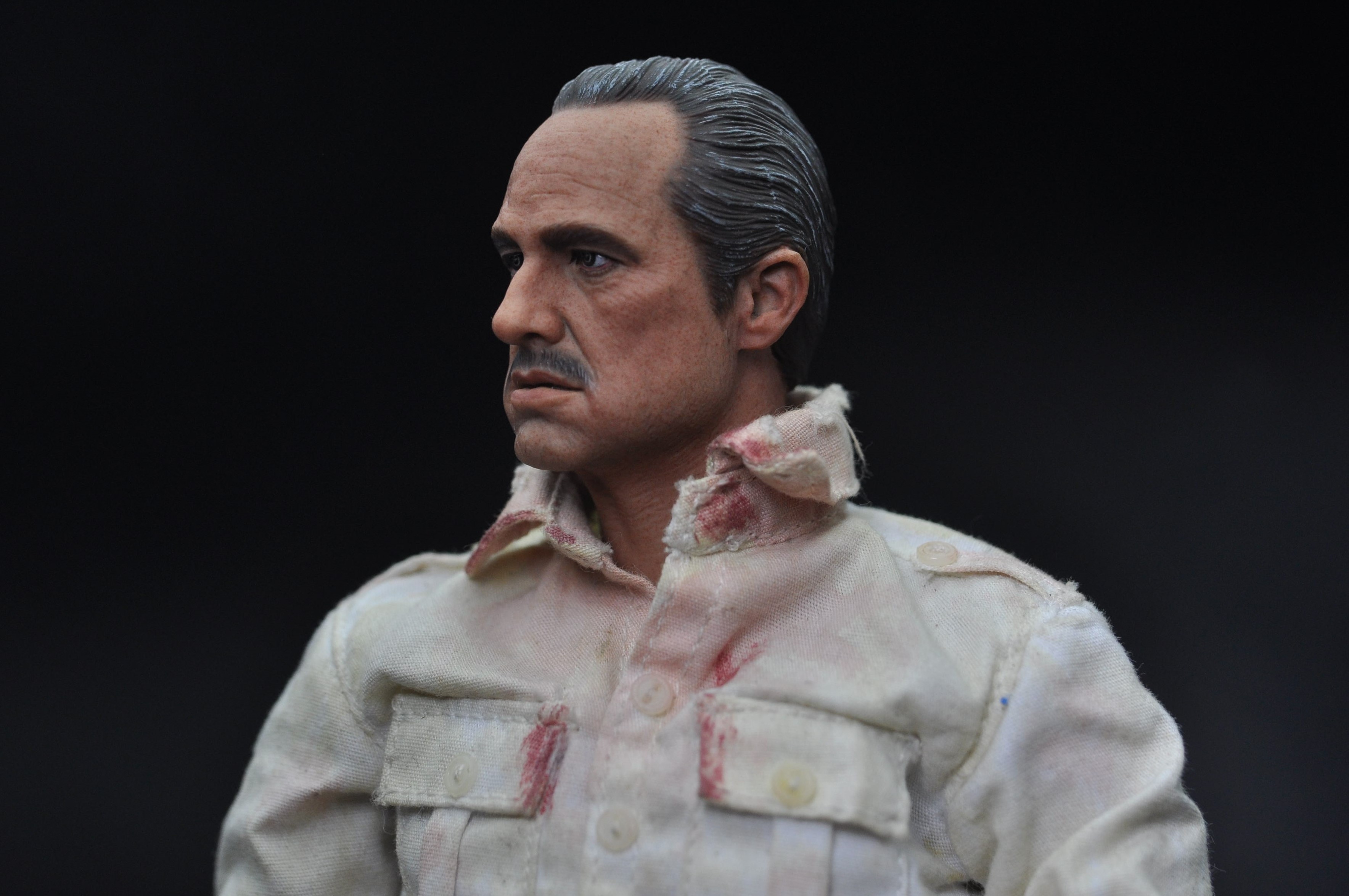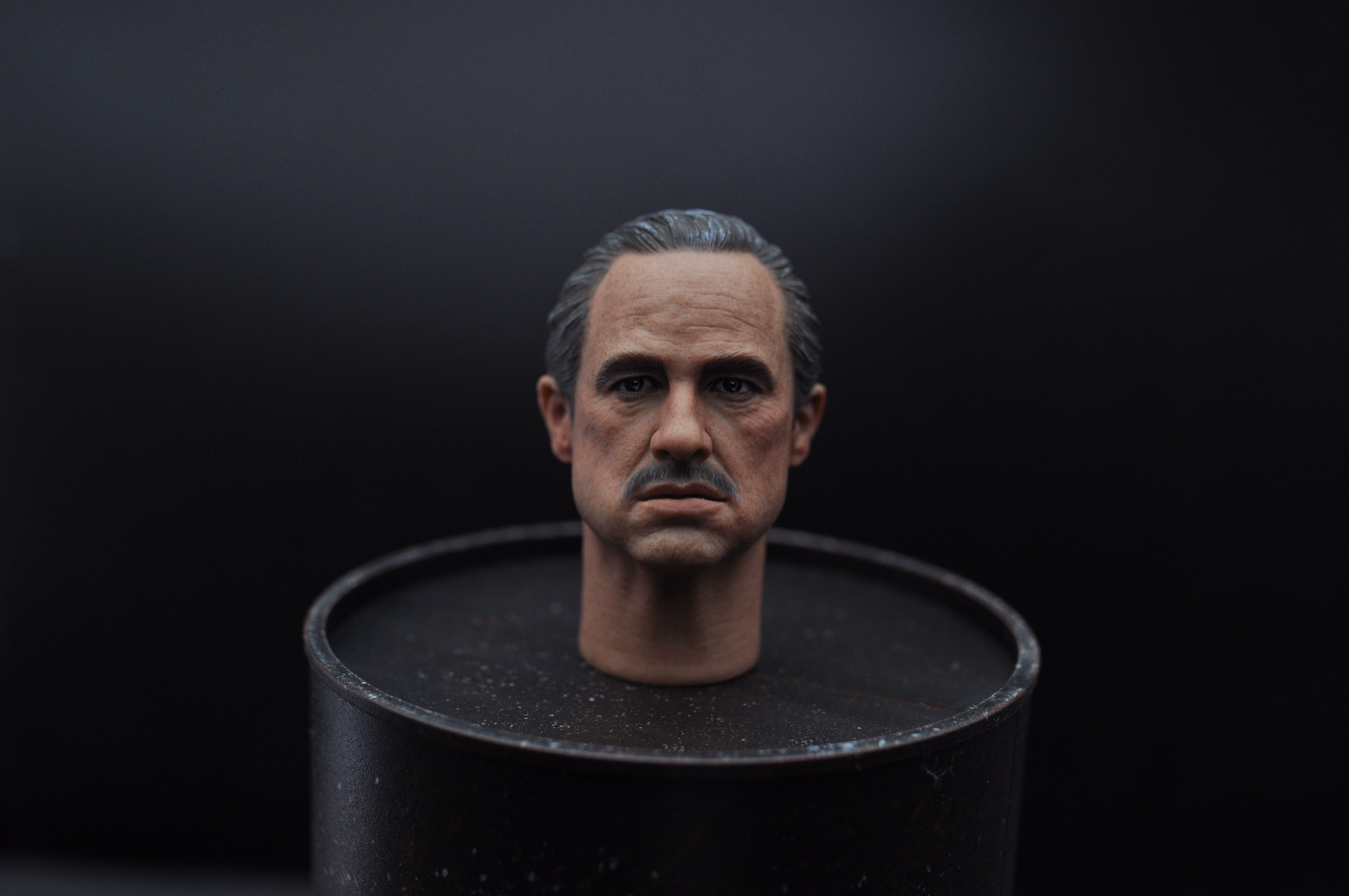所有真人的脸都不是完全正的,尤其有表情的时候。比较明显就是哈里森福特(印第安纳琼斯),彼得·库欣(星球大战新希望)这类人物。我制作的时候特意保留一点这样的痕迹,这次教父的头我特意让他往头往一边歪了一点点以配合眼神方向,根据和脖子的拉扯脸的方面一定会不全正。想以此更传神表达算是尝试