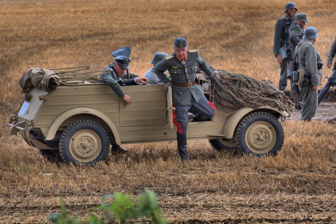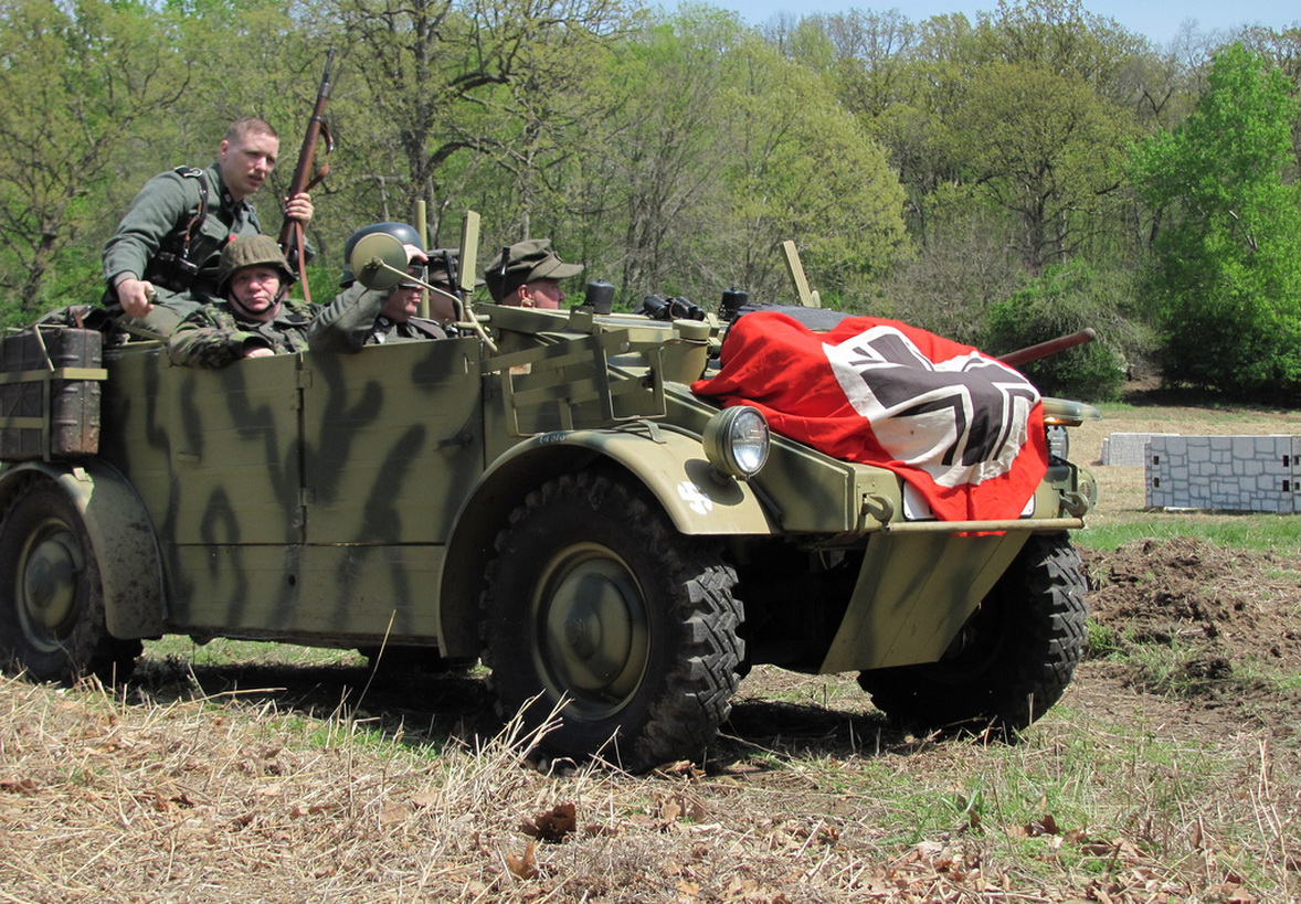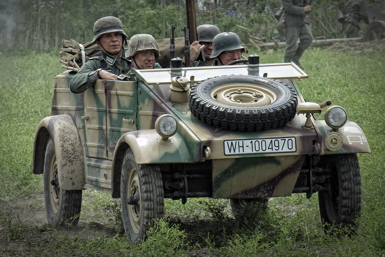 桶车是指保时捷公司生产的VW82(Kubelwagen),它就像美军的MB/GPW一样,成为德国军队的象征。(VW82)德国桶车被誉为“闪电快马”,与“雄师霸王”美国悍马(Humvee)、“强悍金刚”德国乌尼莫克(Unimog)、“硬汉王者”英国路虎(Rover)合称越野车中的四大金刚。