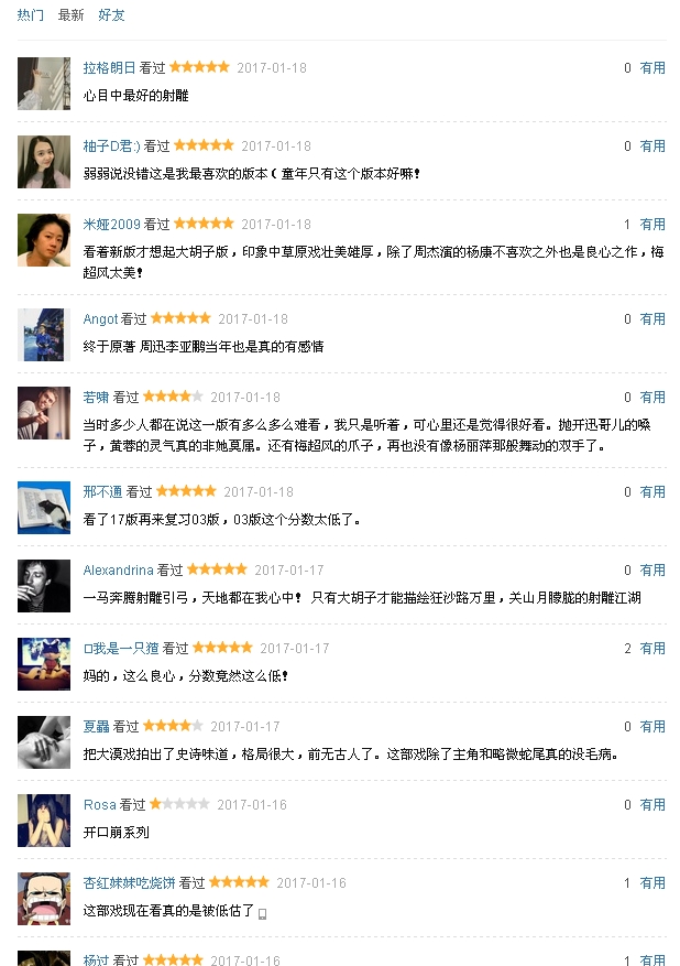这些都是最新的短评,绝大多数都是四星五星的评价。