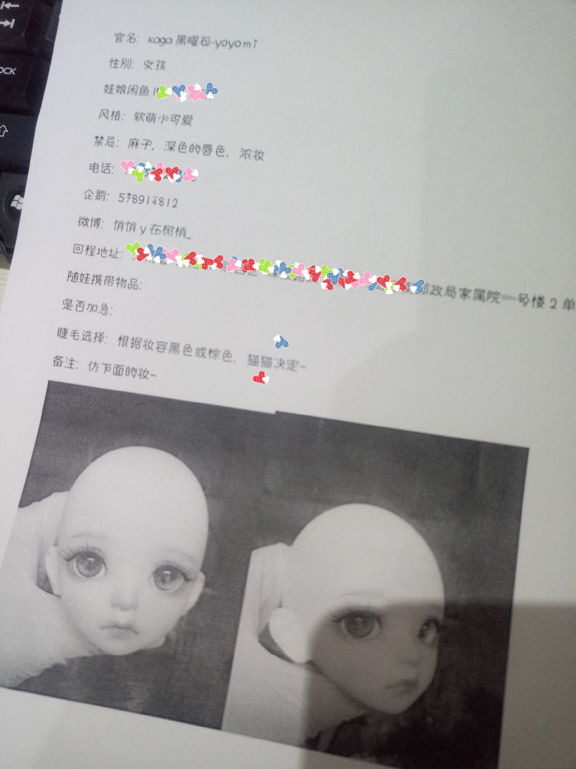 对啦,yoyomi的眼眶小,用官眼的话太大了都没眼白了,虽然客服说用10mm的眼,不过实际上用8mm才刚好啦