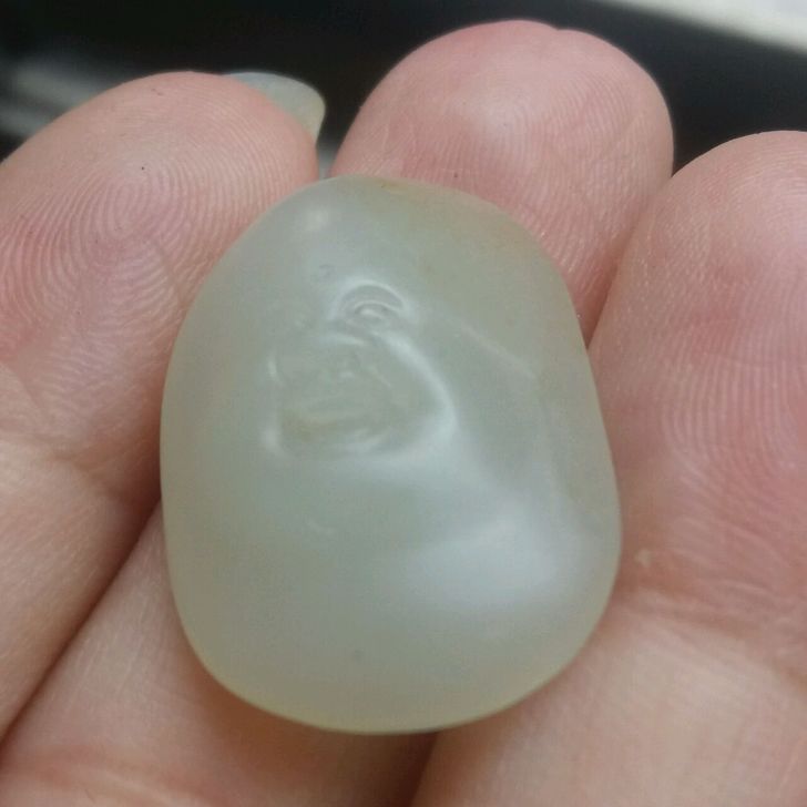 玉质非常细腻油润,白度1.5级左右偏暖,整体打灯都难见结构,苏工雕刻,开脸喜庆,头侧有淡淡的洒金皮,毛孔细小,重4.1克。虽然个头小,但是雕工一丝不苟,是送小朋友和妹子的绝佳小礼品。410包邮。