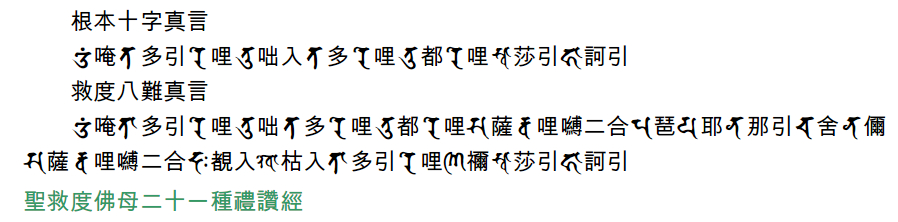聖救度佛母二十一種禮讚經》。