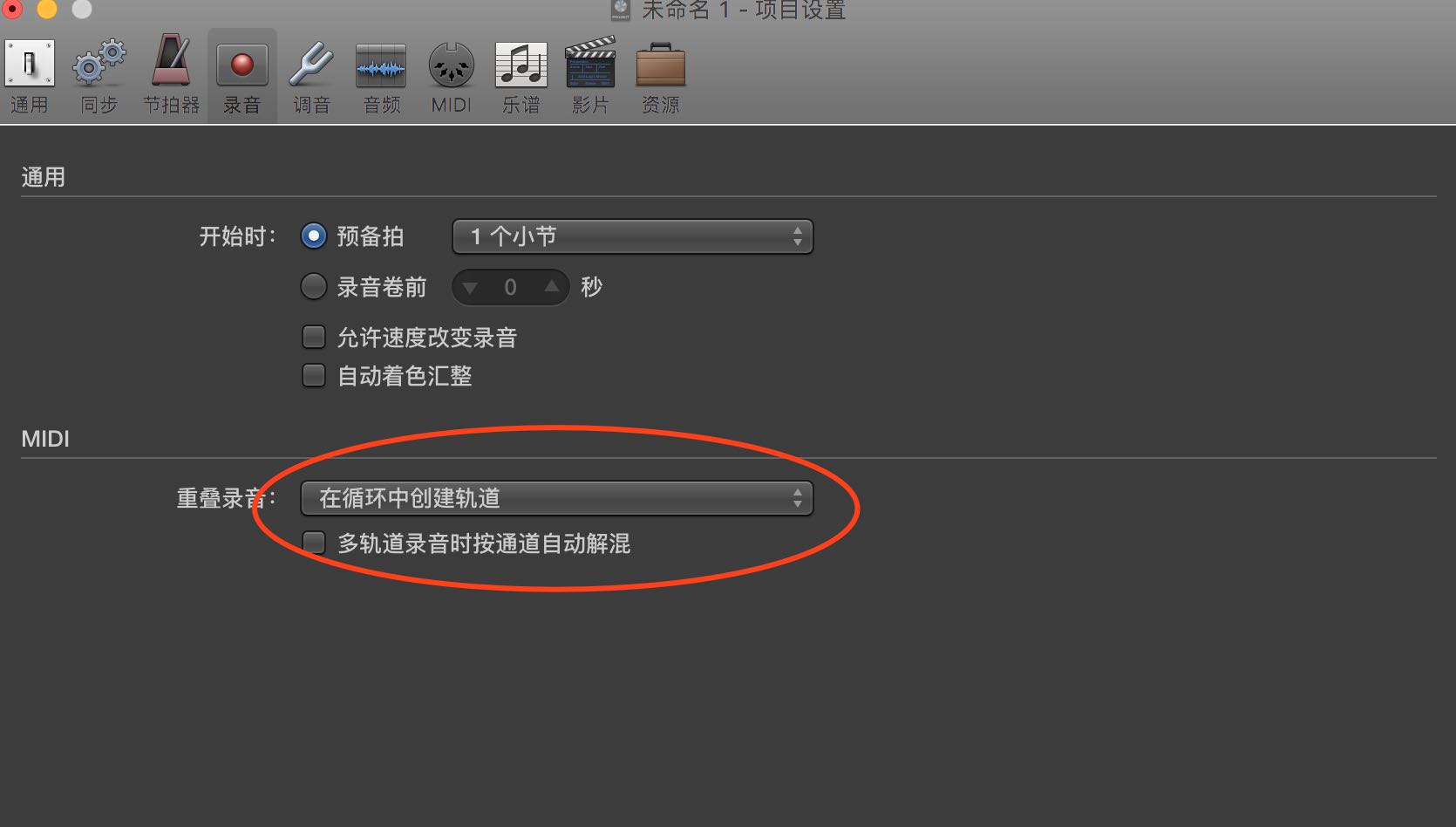 logic上midi录制,录音时两遍重叠在一起。