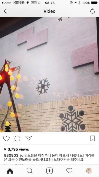 170113 推特ins更新一则:从早上开始就在下着漂亮的雪!!大家最近都在听什么歌呢 给我推荐点吧!!