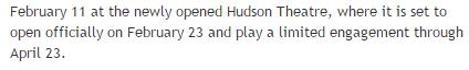 2.11日预演,2.23日正式公演,4.23日结束