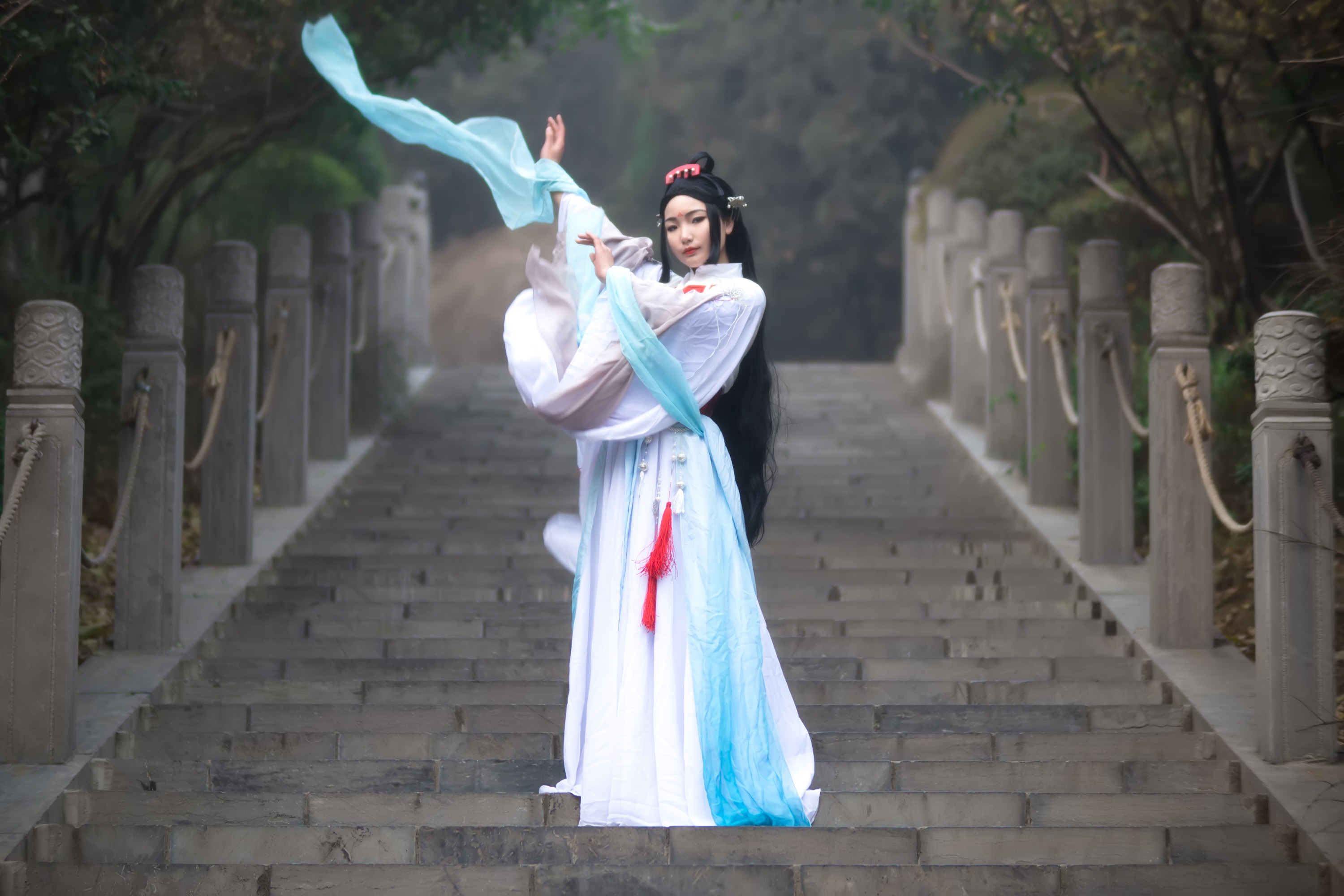 总结:先说明一下,我在拍外景的时候完全没有注意到头上少戴了四根簪子,过了好久之后我才注意到的(捂脸)。