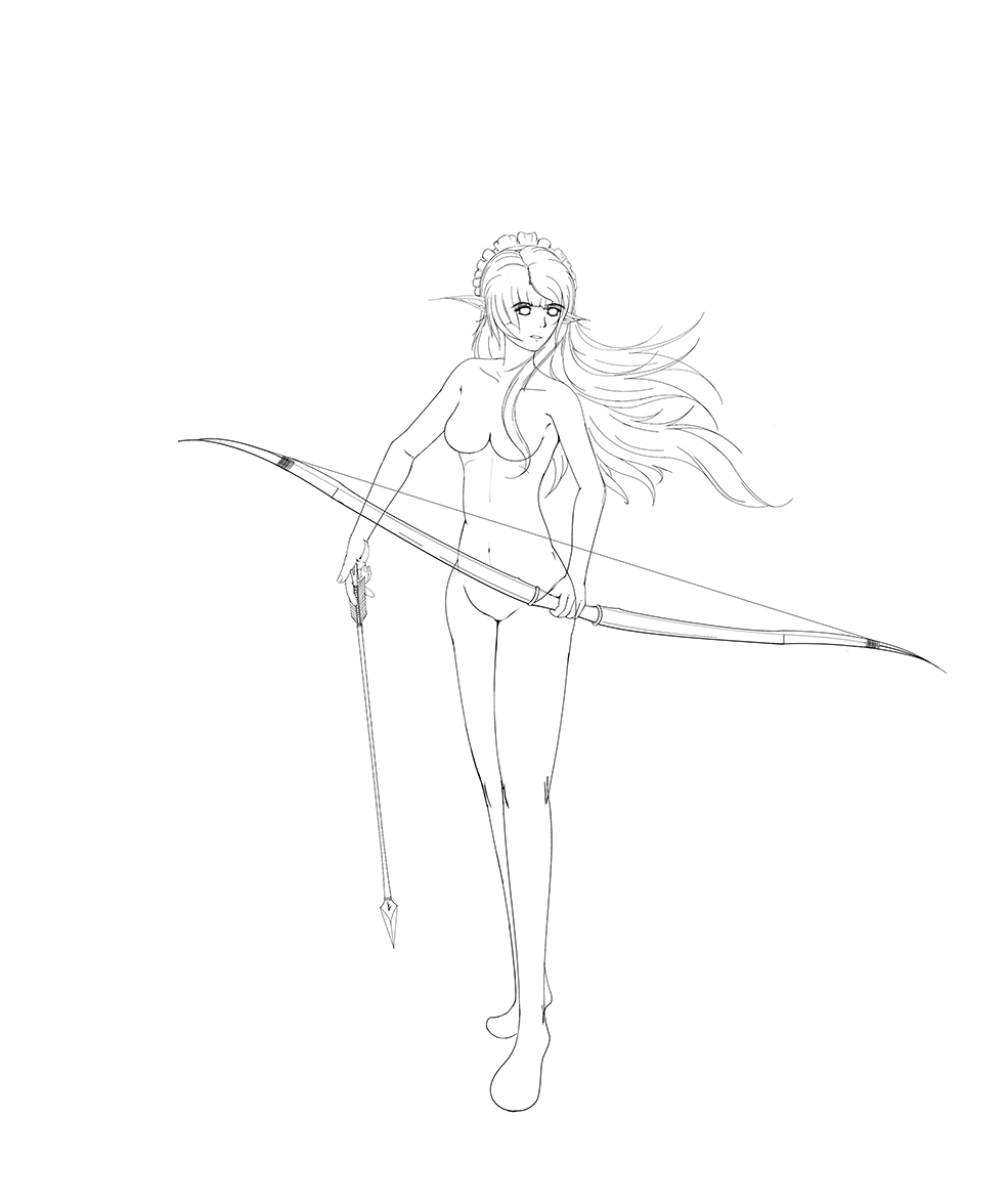 大姊,你的武器實在是太奇耙了,依造設定集的設定,箭袋擱哪我可以忽略,但你確定是拿的弓而不是路邊撿來的十字弩嗎...