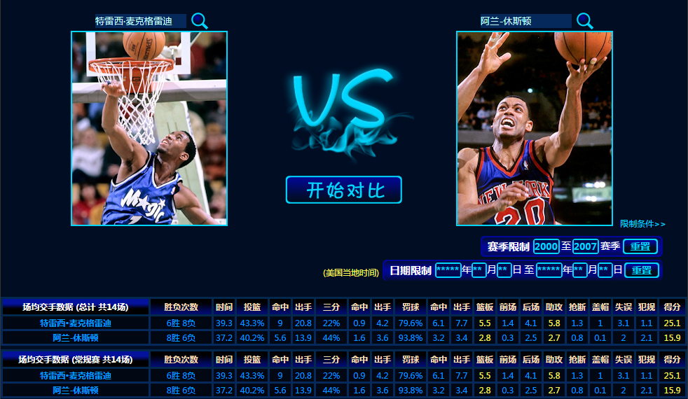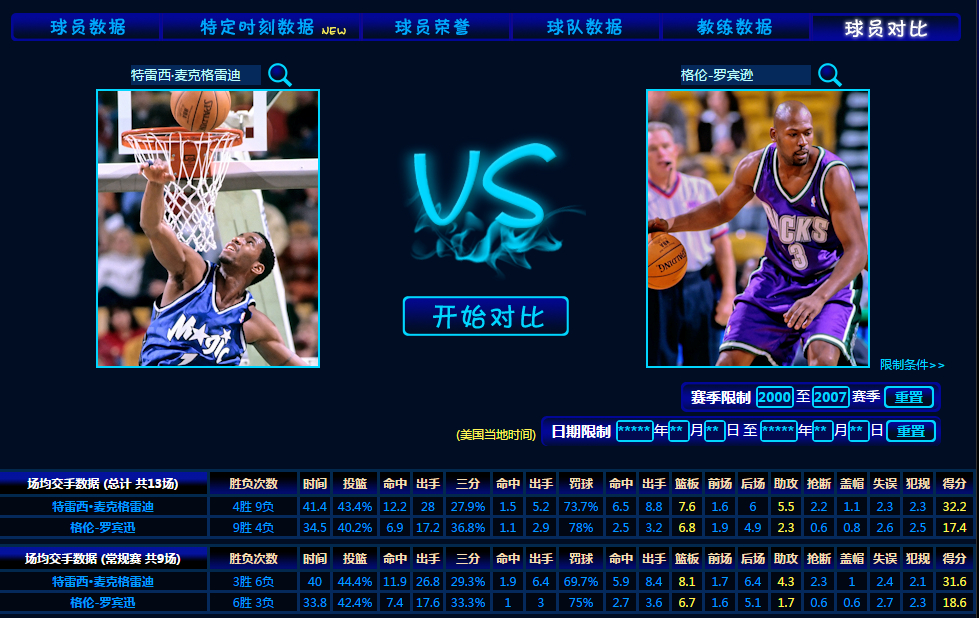 1.以下对比均为麦迪2000~2007年的对位情况;