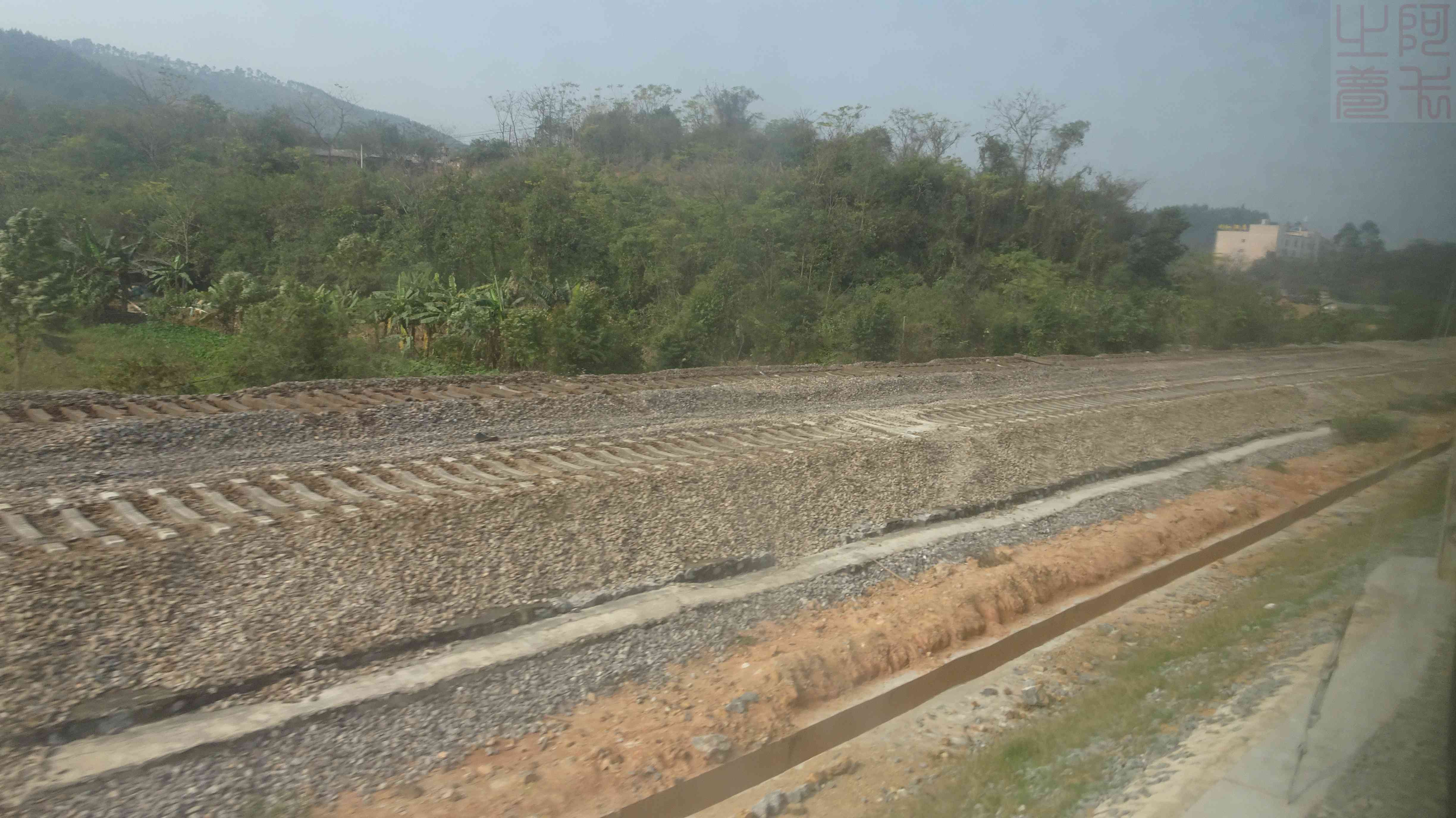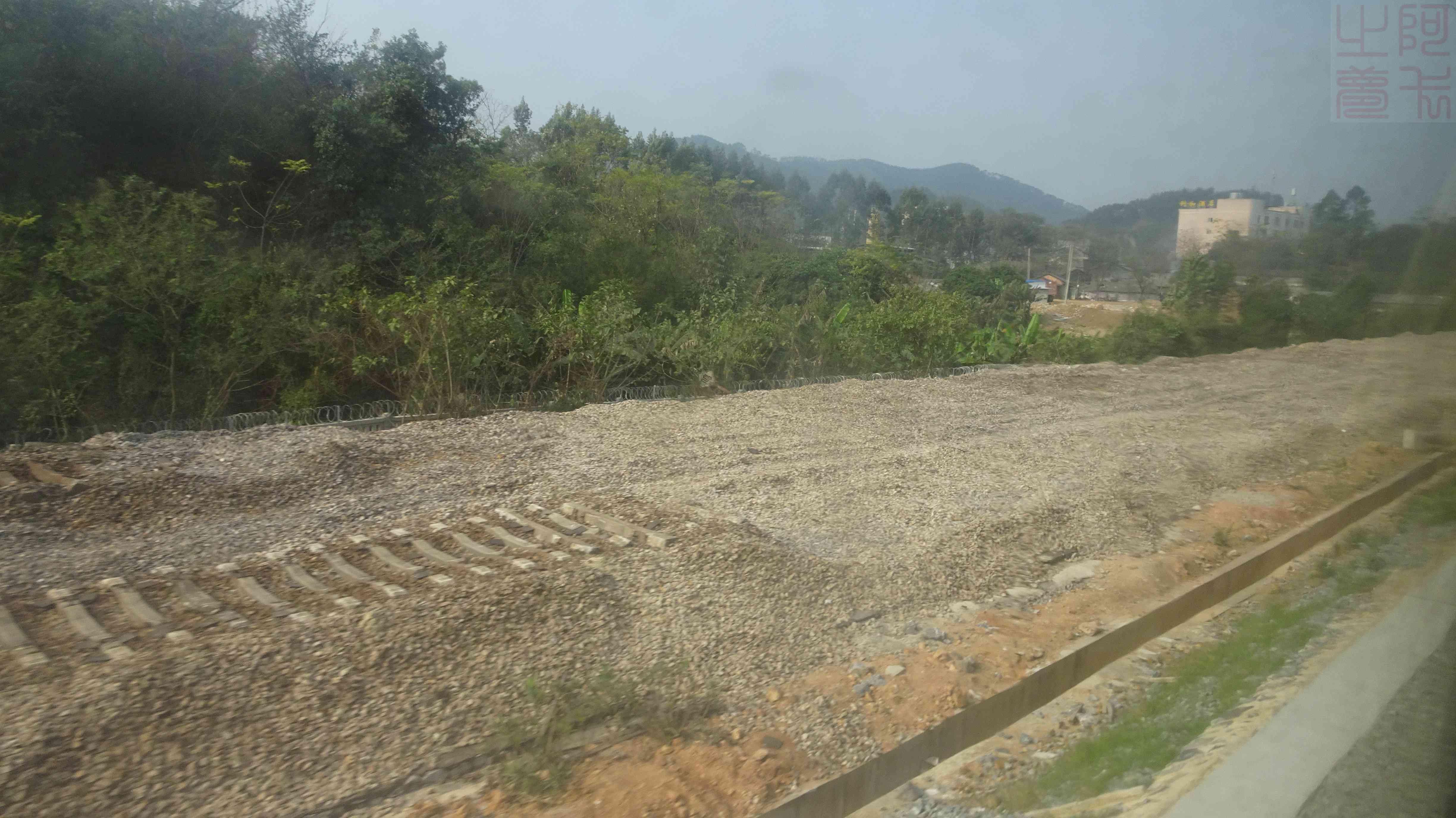 黎湛线电化提速改造刚完成黎塘--米场段,旁边能看到一些截弯取直后遗留的痕迹