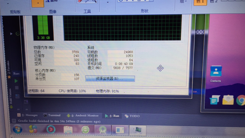 开As (android studio)and gnymotion (虚拟机),内存一路飙到97还有3%留着压压斤。立马京东下单2.8发货,并坐等第二行代码,加二手安卓机。万事俱备 ,只欠刘备。