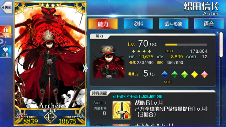 2016年12月19日,第二张活动赠送的金卡织田信长。这次终于吸取了C龙娘那时的教训,早早就把材料换齐了……