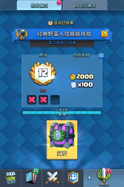 刚刚打了一次免费的,直接十二,分享一下卡组,是自己组的一套胖墓,不会的可以问一下我