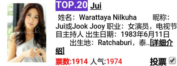 最受欢迎的亚太日韩女明星排行榜中榜投票年初重新开始了。现在JUI在第一页。喜欢她爱她就去投票吧! 别忘了还有最受欢迎情侣档投票。