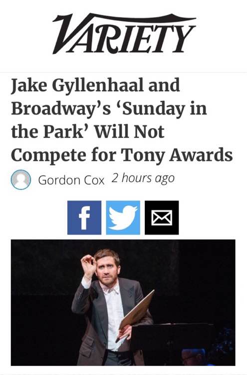 【Jake】帅吉和百老汇的“周日游公园”放弃竞逐东尼奖