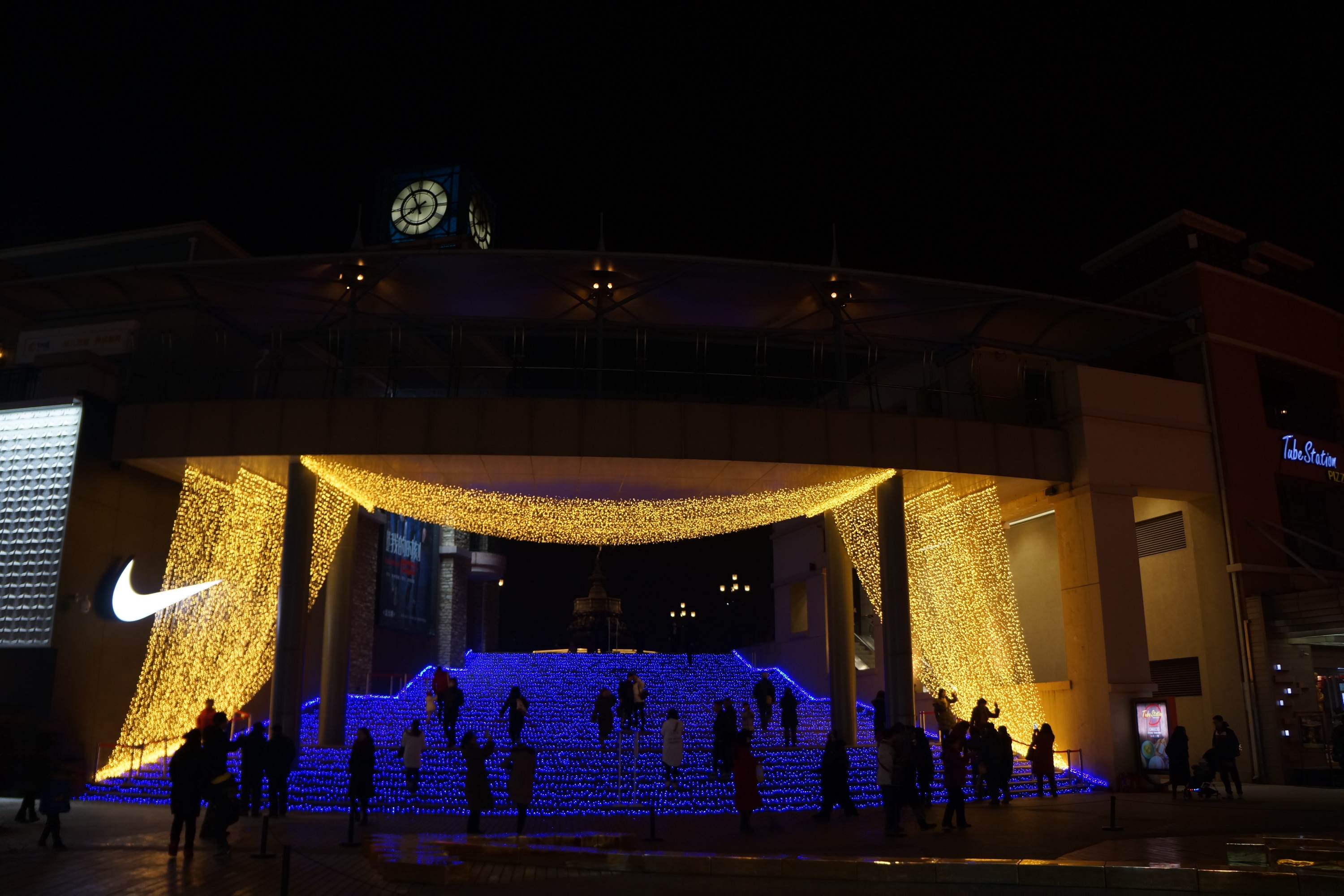 夜景还是配三脚架的好,怕画质低,就把ISO固定在800以内,手拿稳,光圈开大,调好色温,可以用流行色彩来提高色彩鲜艳度。