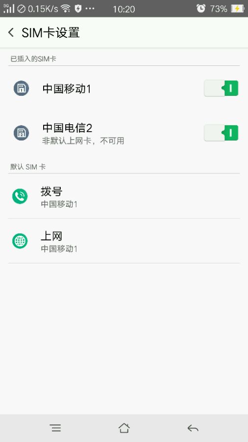 使用移动卡的话电信卡就不能用了,我想用移动卡上网!但又要电信卡开着机,电信号码是我常用号码,移动卡只想上网用用