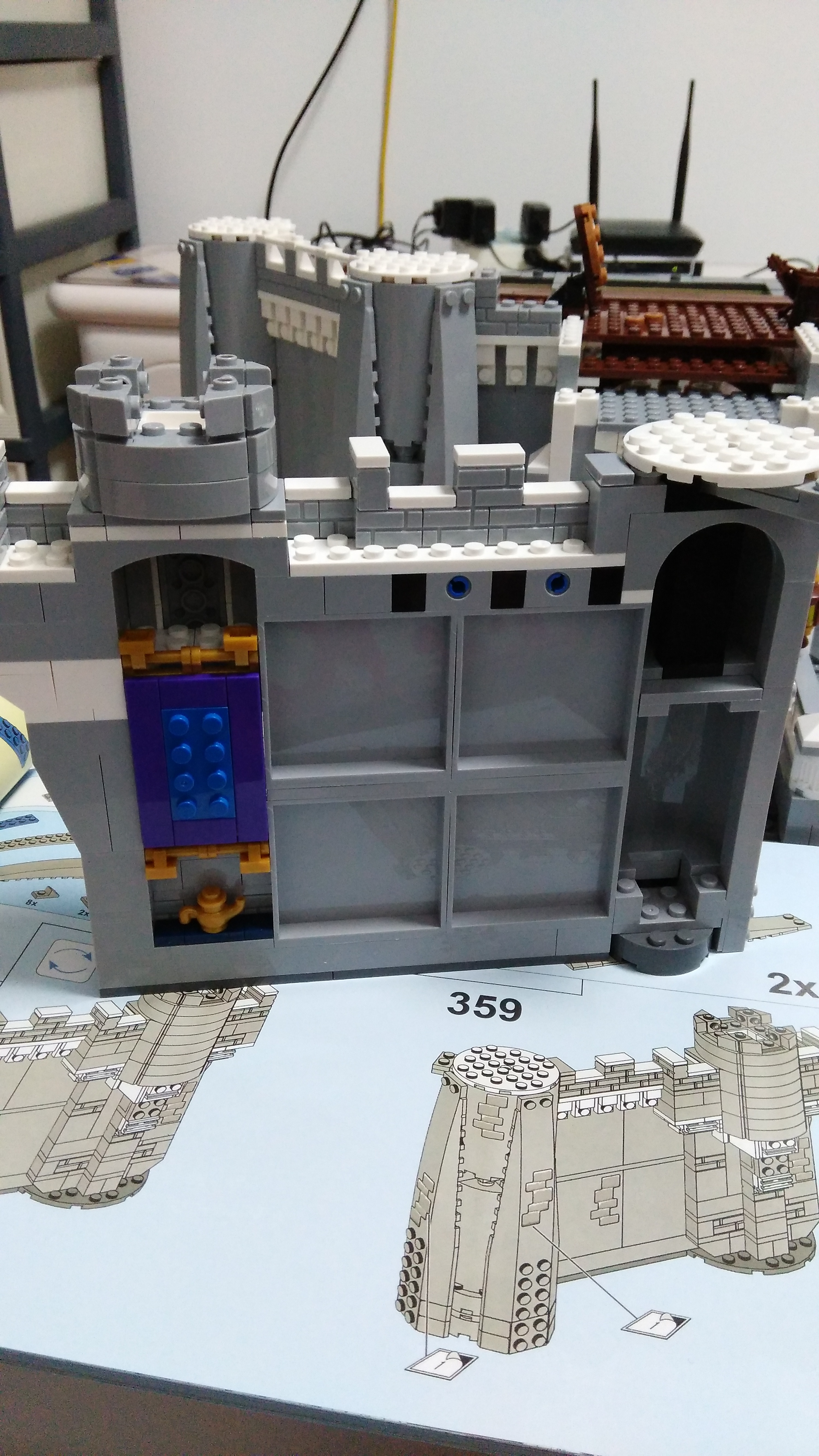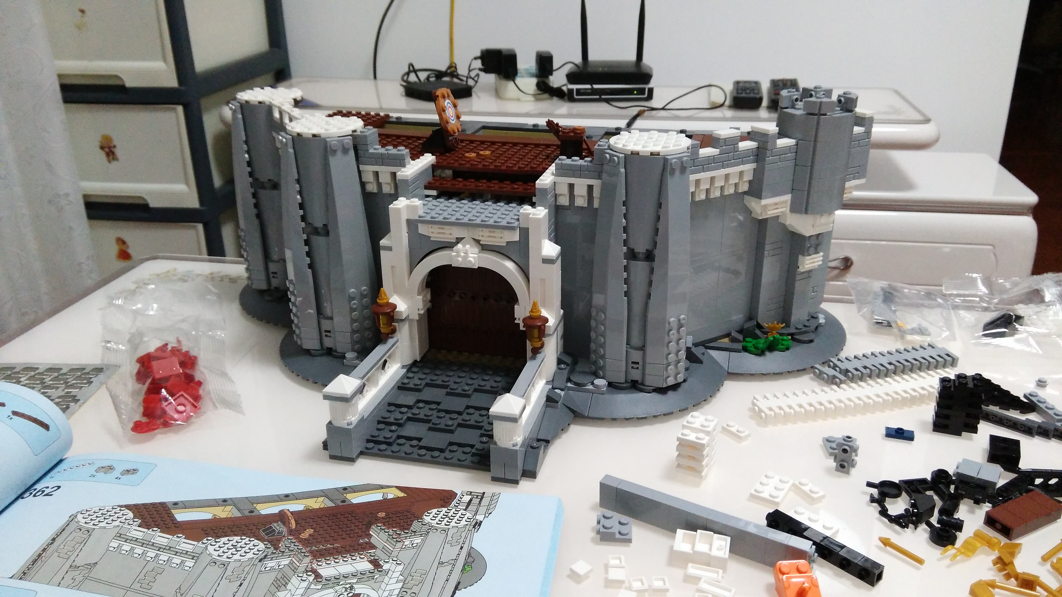 墙体用了活动的设计,看到2x就习惯性的把零件都一次找出来,省得拼完再找一次,城堡有一点好,就是单个零件都不会太多,做完一步,会用完好几种零件,感觉上不是太累(对比之前的大千年,城堡找件真是太轻松了)