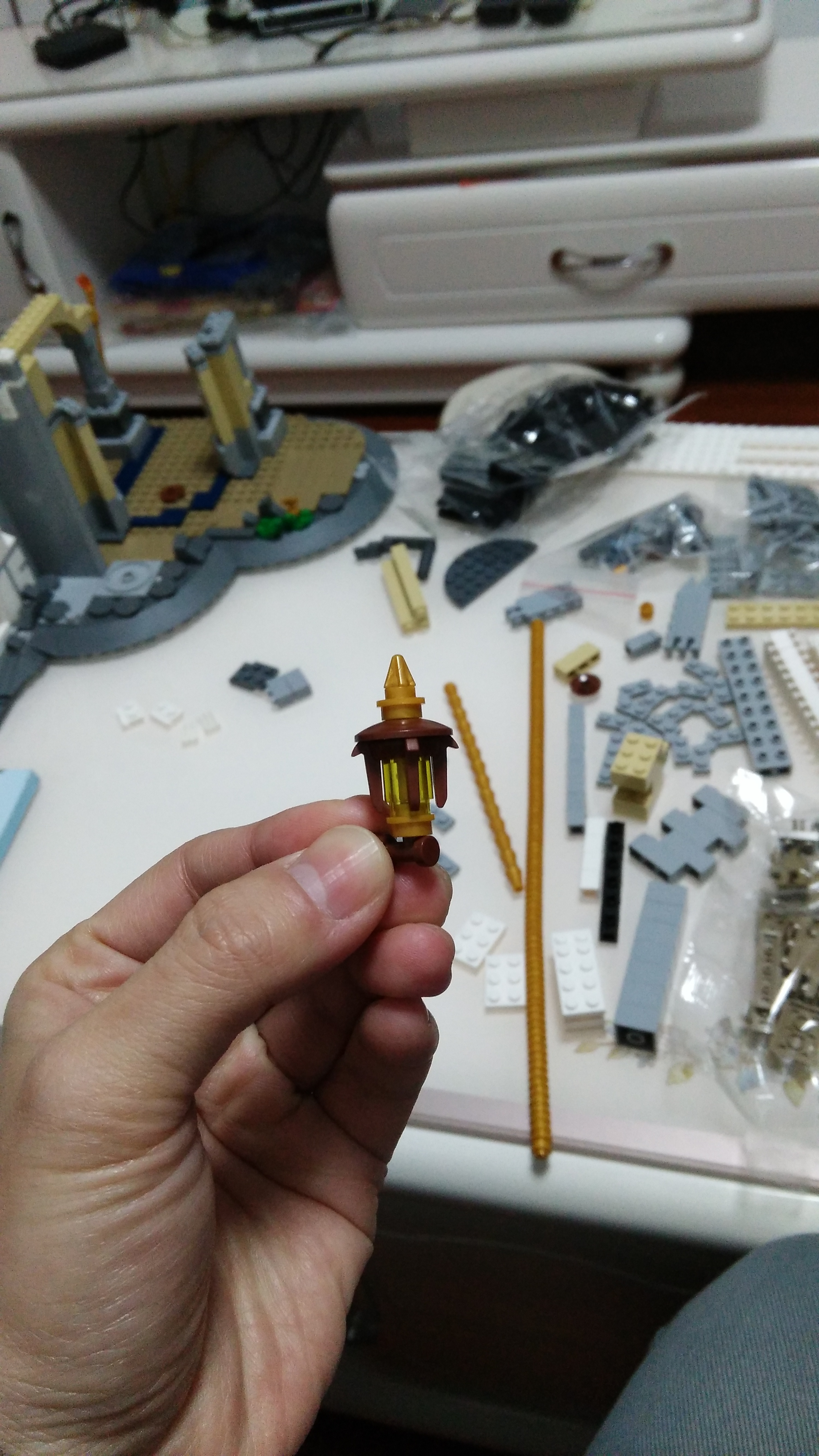 最让人诟病的一个点出现了,拱门上方有两个空隙,应该是灰色零件没有新开模的关系把,将牌的城堡貌似这个位置是还原的